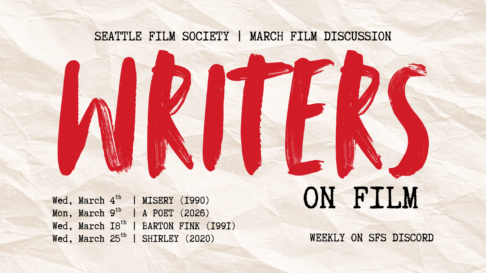 This March, our Film Discussion Group will be covering Writers on Film